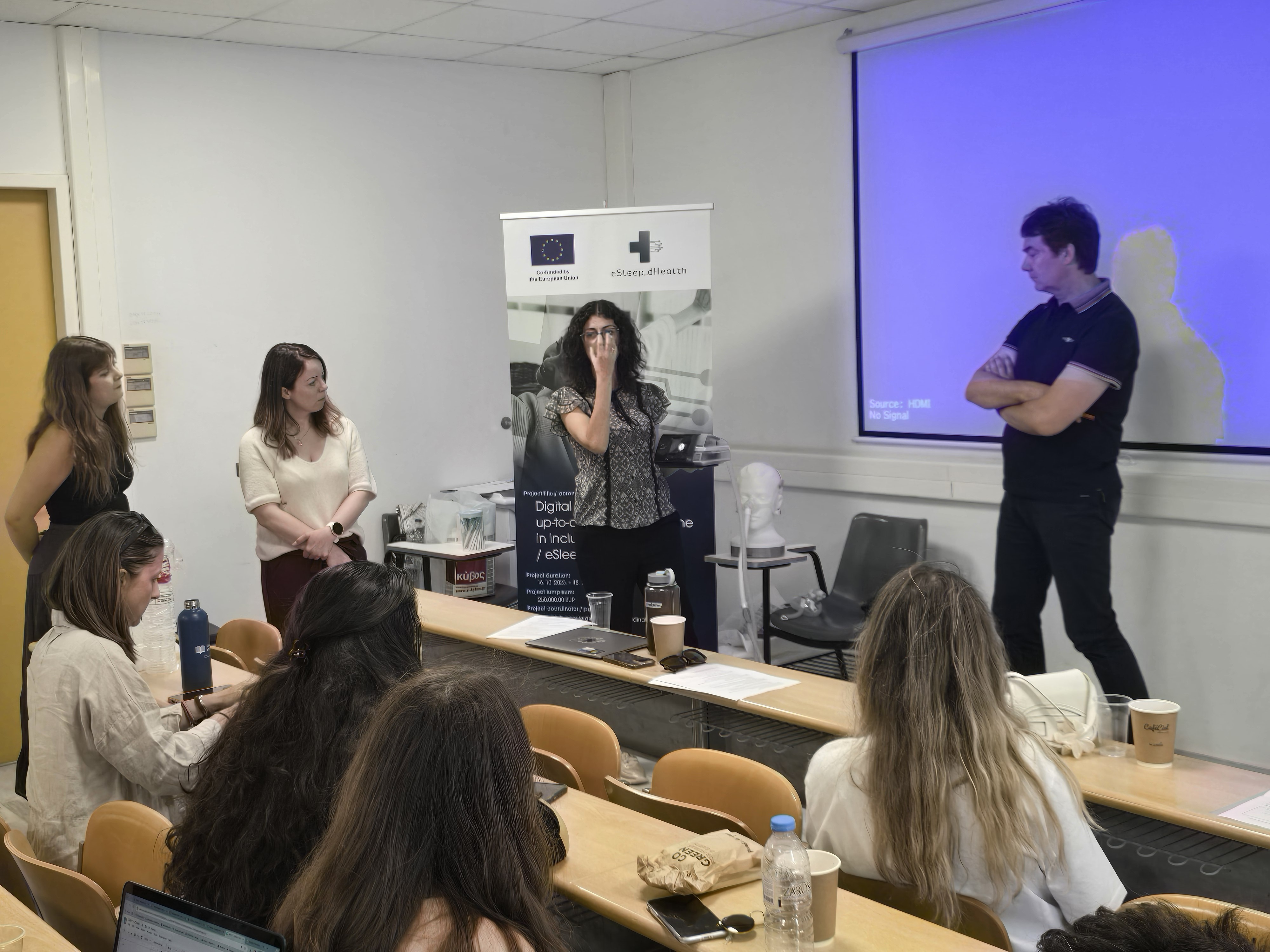 During five dynamic days, 24 students from the University of Split, University of Crete, and Reykjavik University were immersed in a real-world innovation experience. Divided into six international teams, they applied their knowledge from the eSleep_dHealth online course to co-create solutions that respond to a pressing issue in sleep medicine: How to improve CPAP therapy adoption at home among patients with sleep apnea