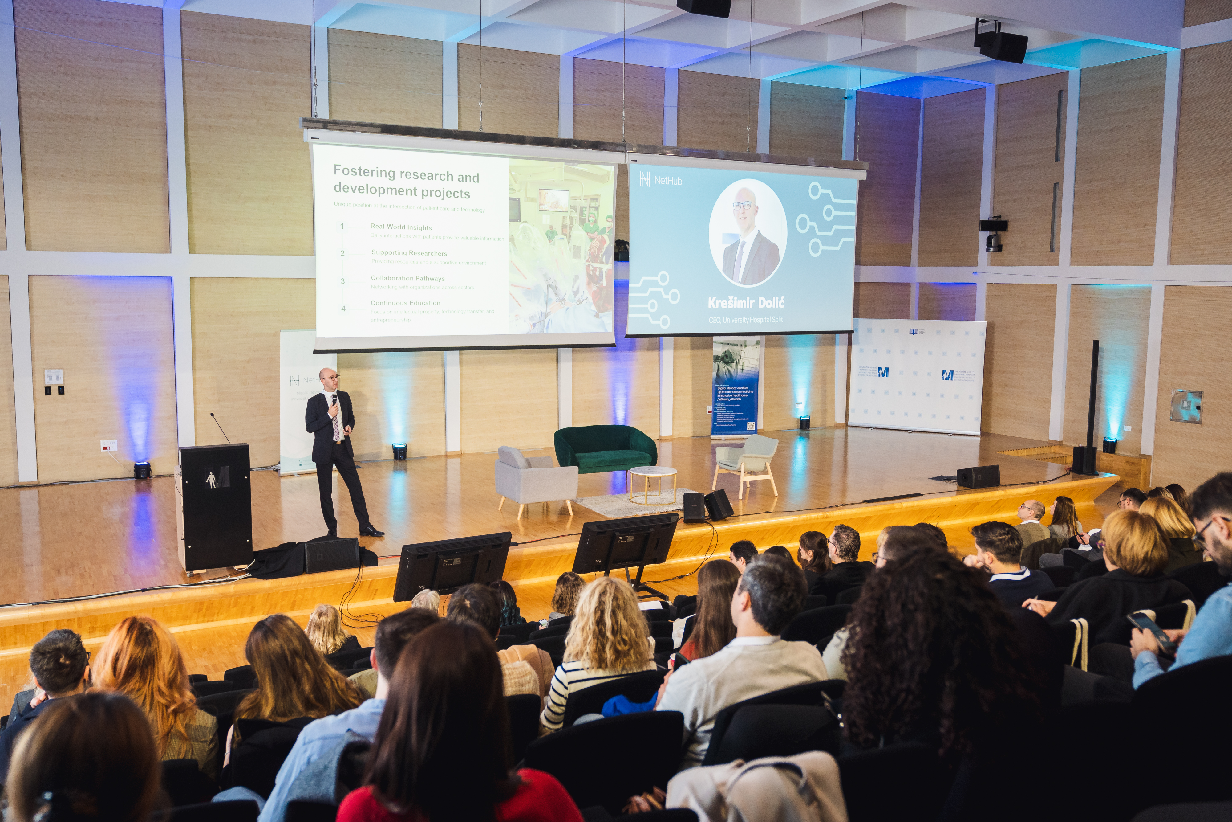 Krešimir Dolić, CEO of the University Hospital Split, shared his perspective on the challenges and opportunities in integrating innovative technologies into healthcare systems. His presentation provided practical insights into bridging the gap between healthcare needs and technological solutions.
